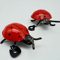 Als je iemand geluk wil brengen of je liefde betonen (Valentijnsdag!) kun je bijvoorbeeld dit lieveheersbeestje kopen. Deze dieren zijn , net als de vogels en andere dieren, gemaakt van metaal. Dit metaal bestaat uit schrootafval en wordt in Zimbabwe verwerkt tot de mooiste siervoorwerpen. Gone Arty…