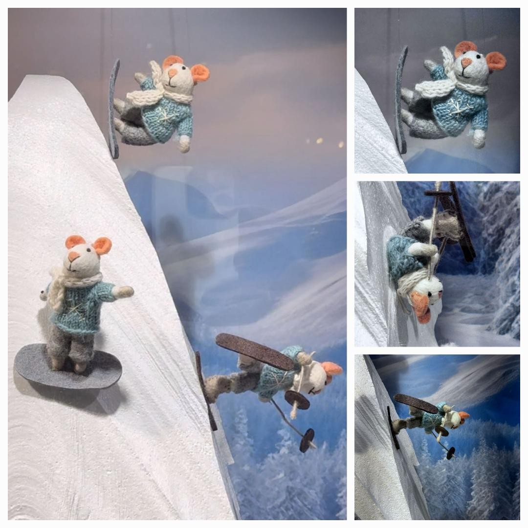 Wintersportmuizen uit de etalage en de winkel