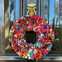 Het bedrijf van de kransen is Pri Pri. Bij het maken van de kransen wordt elk stukje stof gebruikt. Zelfs de kleinste restjes worden gesneden en verwerkt tot o.a. prachtige kransen! Pri Pri gebruikt materialen die al bestaan en koopt gebruikte sari's in via eigen persoonlijke contacten of via de markten in Mumbai. Sari's die zowel mooi als gemakkelijk te bewerken zijn, worden geselecteerd. Deze worden vervolgens zorgvuldig gecontroleerd op kwaliteit en grondig gereinigd. Eenmaal gekozen gaat men aan de slag om deze stoffen te ontwerpen tot kleurrijke nieuwe creaties. Door het hergebruiken van bestaande stoffen wordt de impact op de grote textiel stortplaats verminderd. Pri Pri werkt samen met een liefdadigheidsinstelling, Animedh Charitable Trust, die kansarme vrouwen o.a. leert naaien en ontwerpen maken voor de restjes textiel/sari’s. Hierdoor krijgen de vrouwen een baan die hen een betere toekomst voor hen en hun gezinnen biedt. FairItems is de importeur.