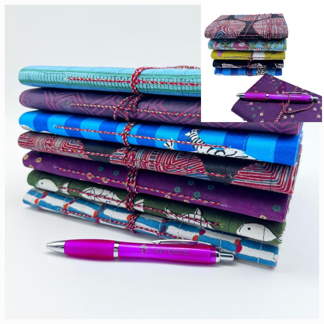 Elk boekje is uniek door het gebruik van de verschillende restanten. De boekjes zijn er op A5 formaat en op A6 formaat en ze sluiten met een lang, kleurrijk koord dat om het boekje wordt gewikkeld. Het papier is blanco en handgeschept. Je kunt er je aantekeningen, creatieve invallen of mooie herinneringen in opschrijven. De boekjes worden handgemaakt en in een Fairtrade omgeving gemaakt in Jaipur, Noordwest- India. De importeur is FairItems.