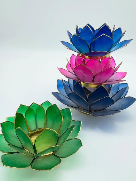 Voor het maken van van de waxinelichthouders worden de gewassen schelpen in de gewenste vorm gesneden en eventueel gekleurd, waarbij het transparante karakter behouden blijft. Vervolgens worden de vormen aan elkaar verbonden door middel van soldering.
